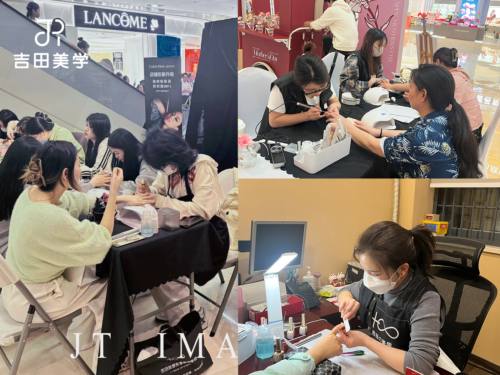 在教学体系方面,吉田美学坚持纯小班授课,区别于行业常见的15 - 20人大班,师生配比更高,老师可以一对一纠正学员在美甲涂胶不匀等新手问题。课程紧跟市场趋势,覆盖了ins风、国风等流行美甲款,学完即能对接主流客单。而且学校还提供专属的免费终身复训保障,打破了小机构一次付费单次学习的限制,学员可免费返校巩固技能、学习新款,不用担心学的款式过时。